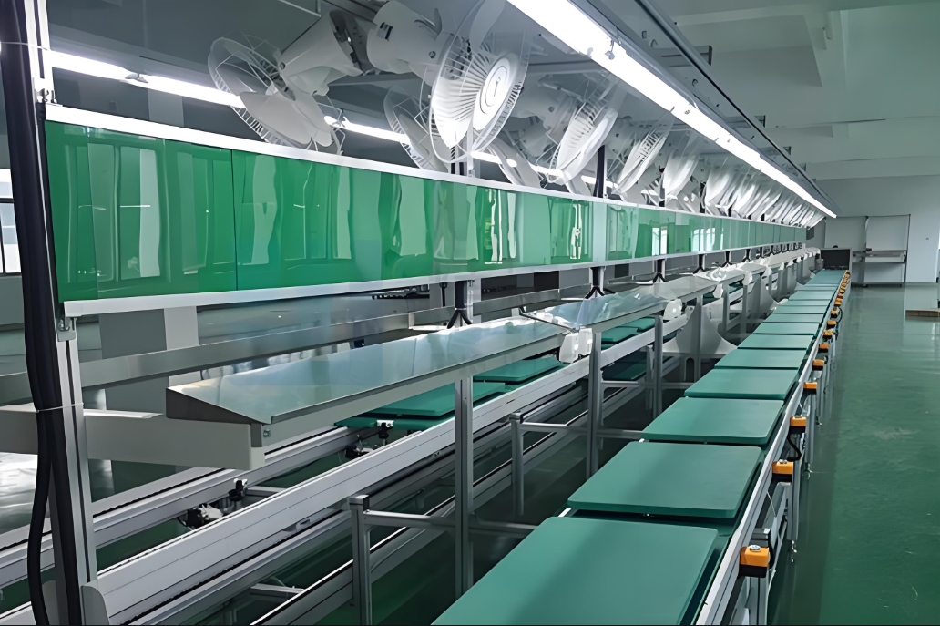电子元器件放置在流水线上的皮带板上。皮带匀速地将电子元器件输送到下一个工位,由于电子元器件通常体积较小,需要精确的输送,皮带流水线能够提供平稳的输送环境,确保元器件在运输过程中不会受到损坏或移位,而且能够适应不同的生产节奏,高效地完成电路板的批量生产。